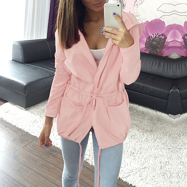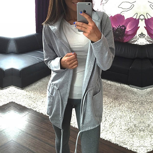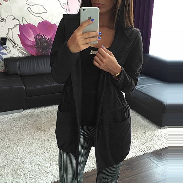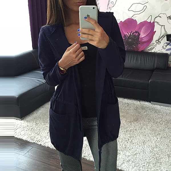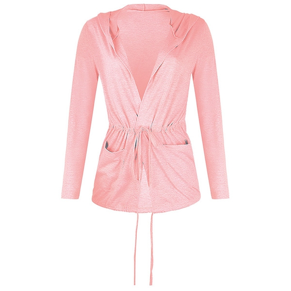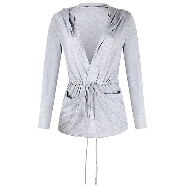 Cardigan a quintessential must-have when the days get a little cold. So how about this one? Styled with solid color,long sleeve and hooded silhouette,the drawstring