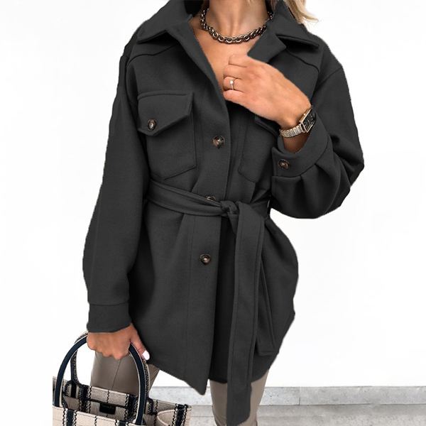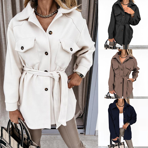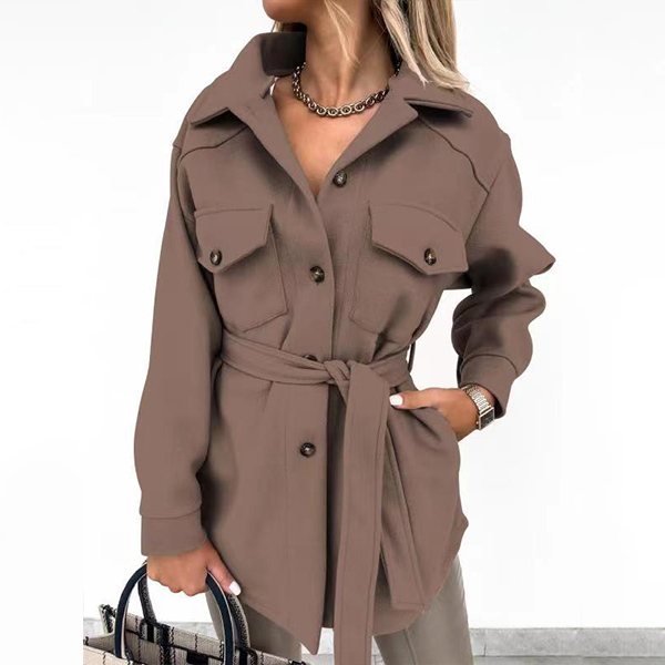 Fashion Solid Color Long Sleeve Elastic Waist Jacket