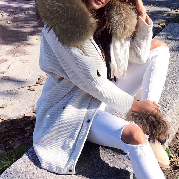 long sleeve,faux fur spliced hooded silhouette,this coat is sure to give you a warm and wonderful winter.