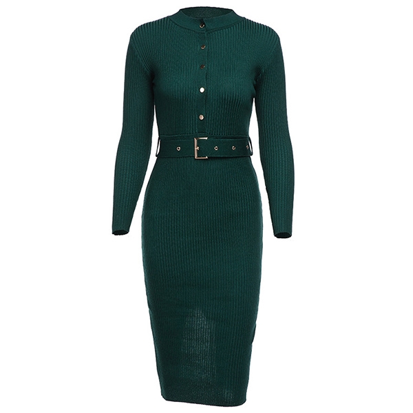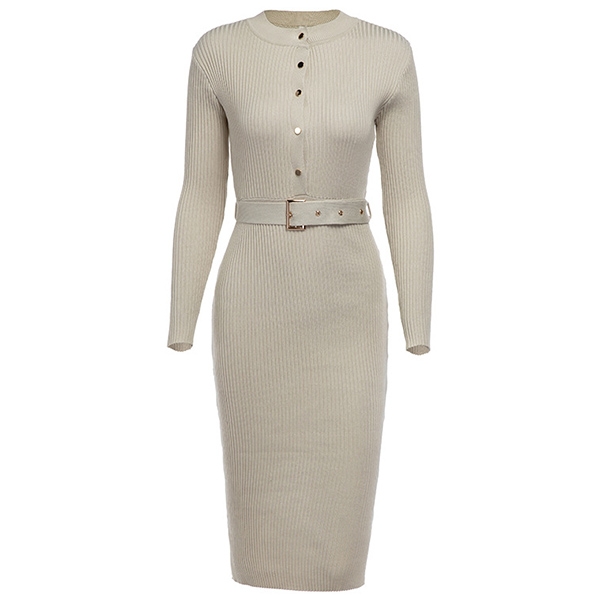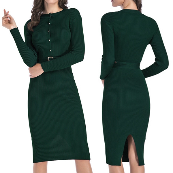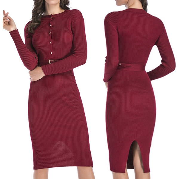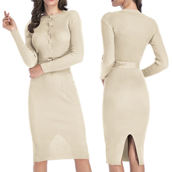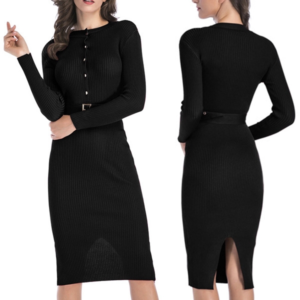 Thanks to the fit silhouette design,you can easily showcase your slender figure in this knit dress. It comes