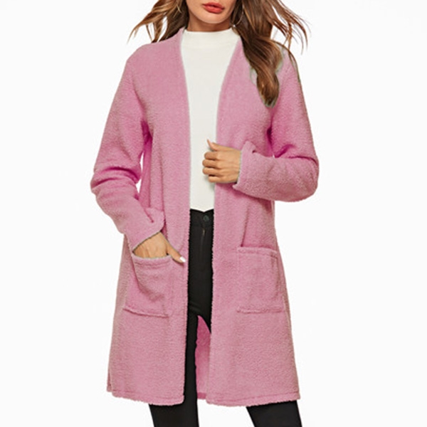 Slip into this cardigan to greet the cold days. It comes with a solid color,simple yet generous.