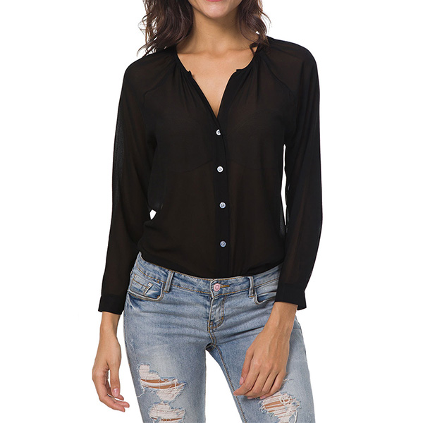 This chiffon blouse is a good way to enhance your fashion style. Solid color style,finished with long sleeve,