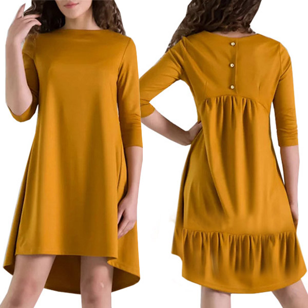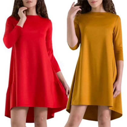 of simple yet stylish vibes. Finished with long sleeve,round neck and a high-low hem,this dress is perfect