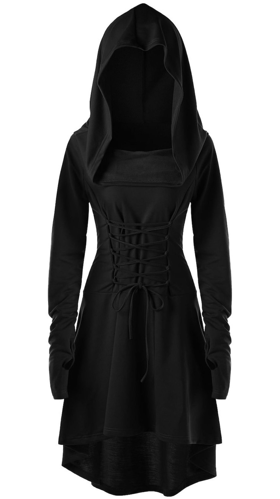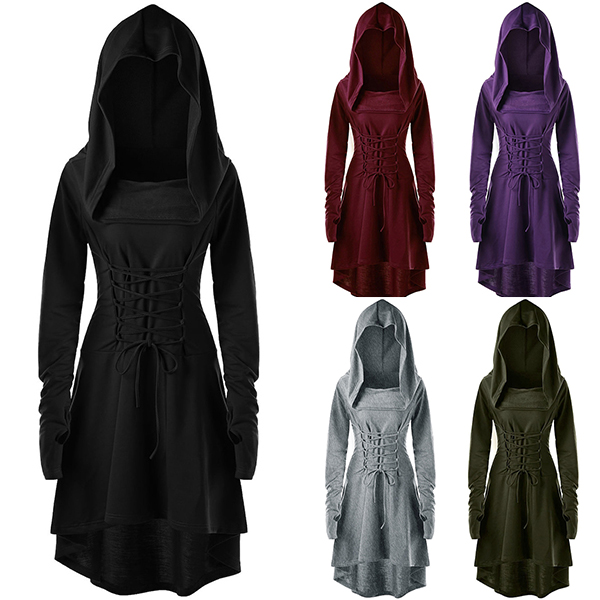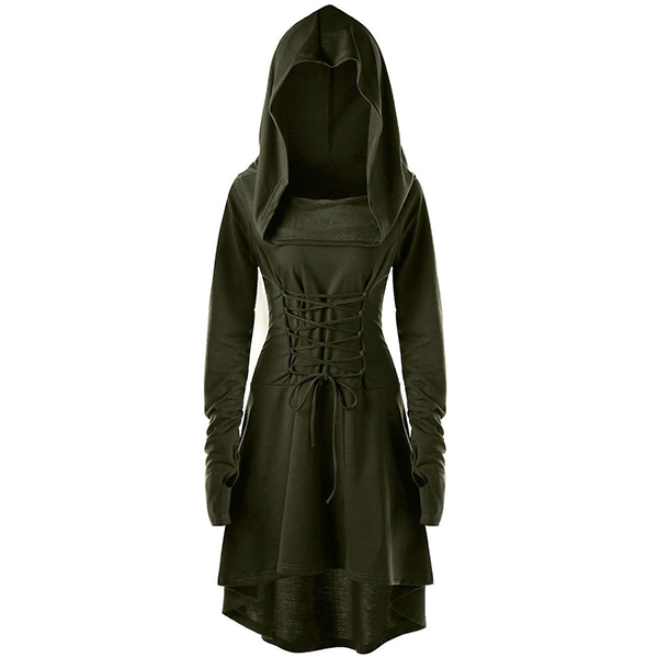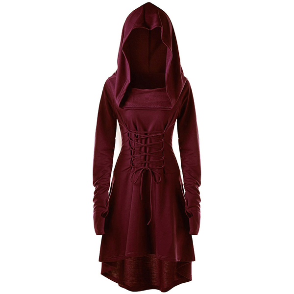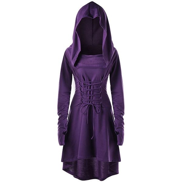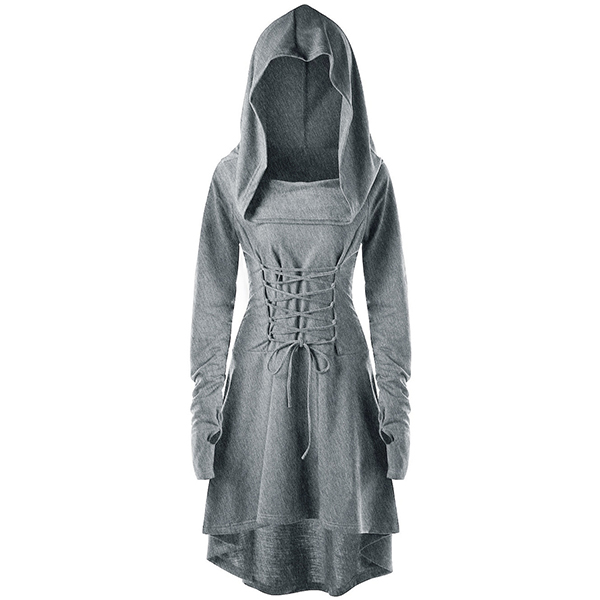 high-low hem and hooded design,chic and unique. Plus,its lace-up design at back can better accentuate your