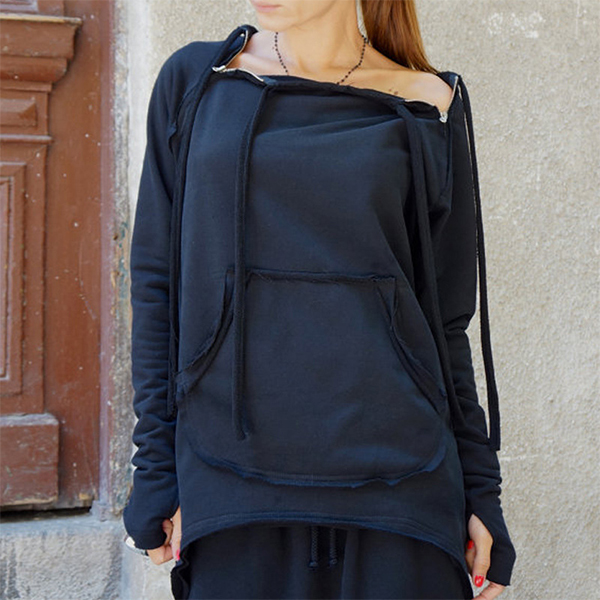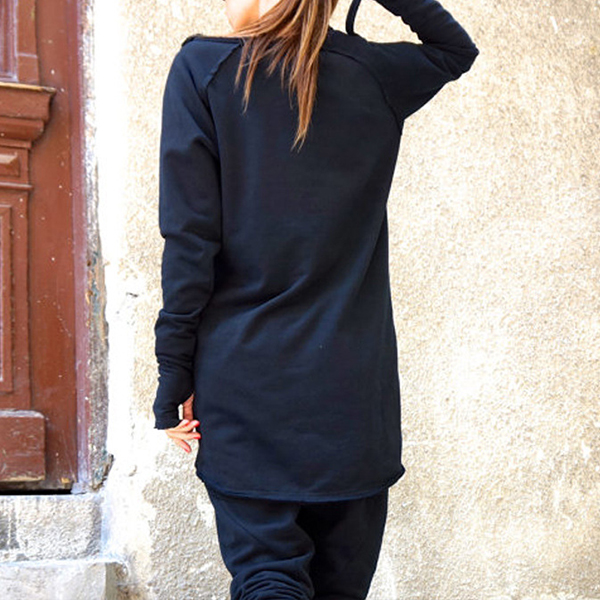 fabric,with long sleeve,round neck and a high-low hem,cozy and chic. Collar part with oblique zipper design makes it