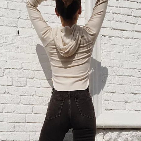 Solid color style,designed with long sleeve,hooded and arc hem,simple,chic yet sexy. Perfect for matching with your