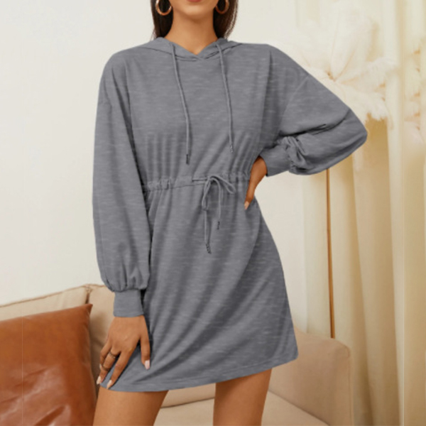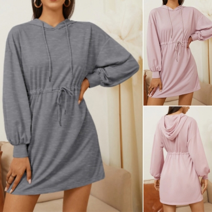 Fashion Solid Color Long Sleeve Hooded Dress(Without belt)