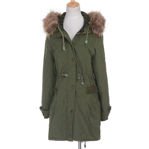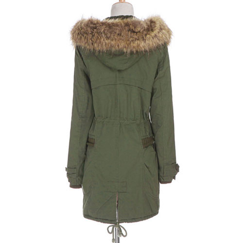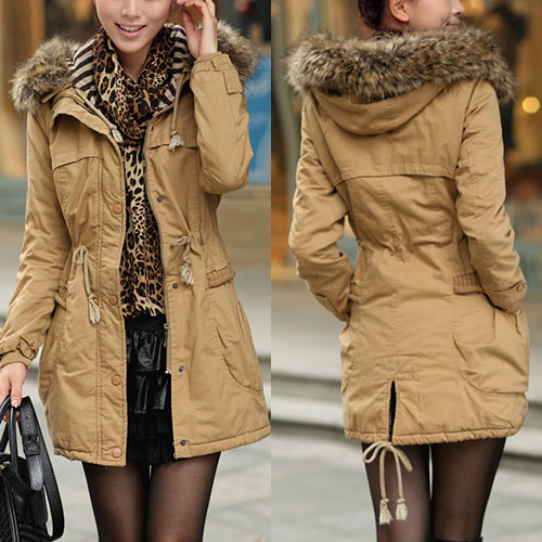 drawstring waist. It features solid color style,fashion and elegant. Hooded style,with faux fur design.
