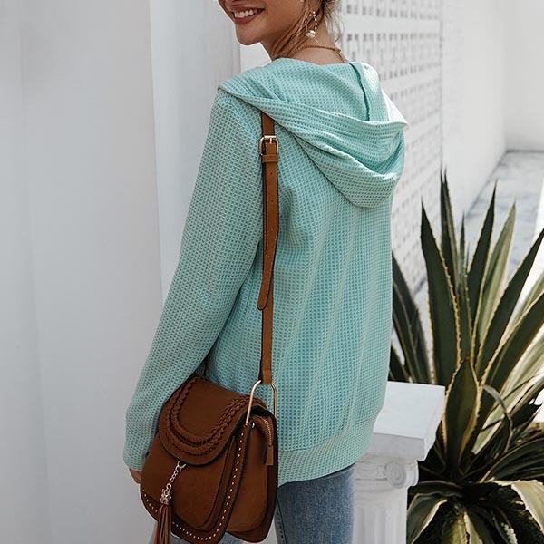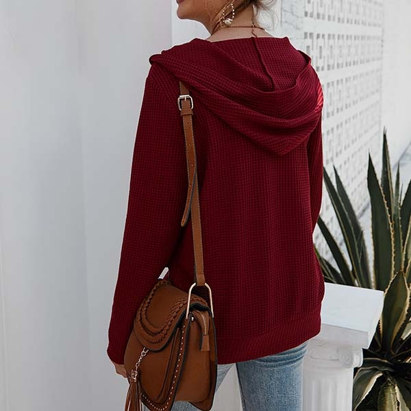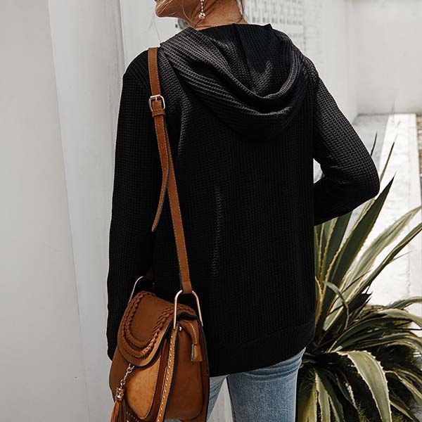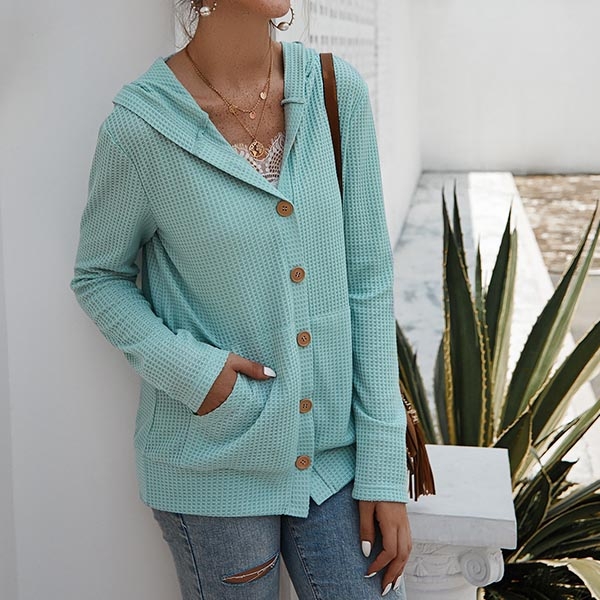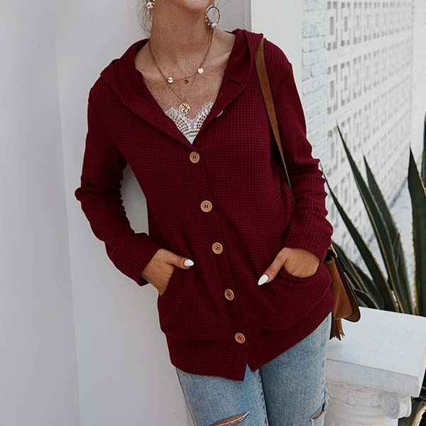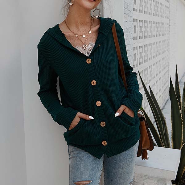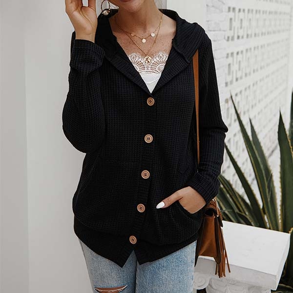 It comes with a solid color,with long sleeve,hooded silhouette and front-button design,this knit cardigan