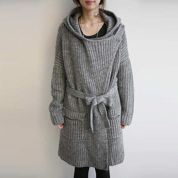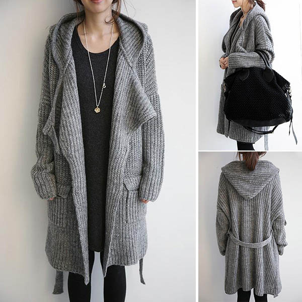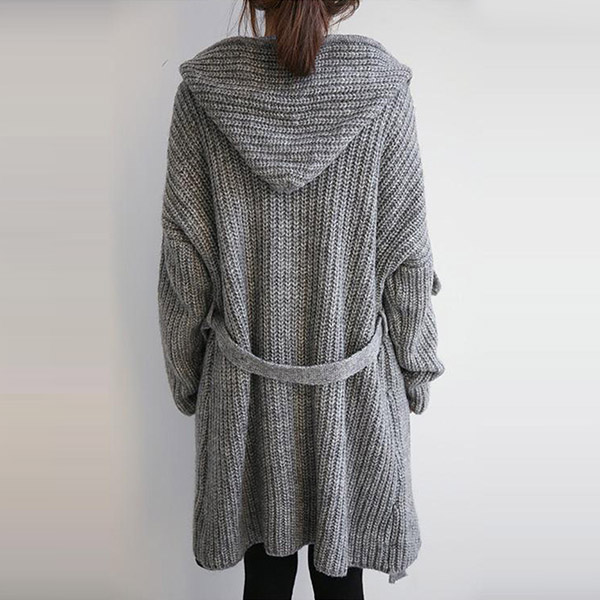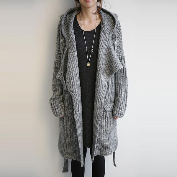 Fashion Solid Color Long Sleeve Hooded Knit Cardigan