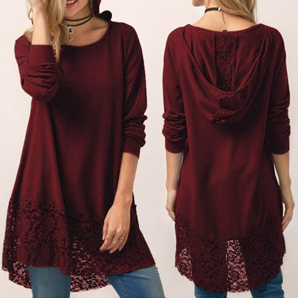 Solid color style,the lace spliced design makes this piece look more attractive.