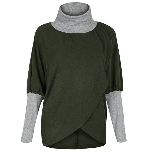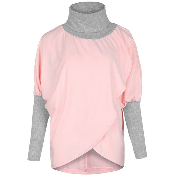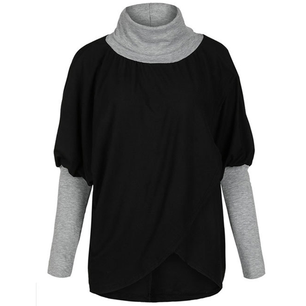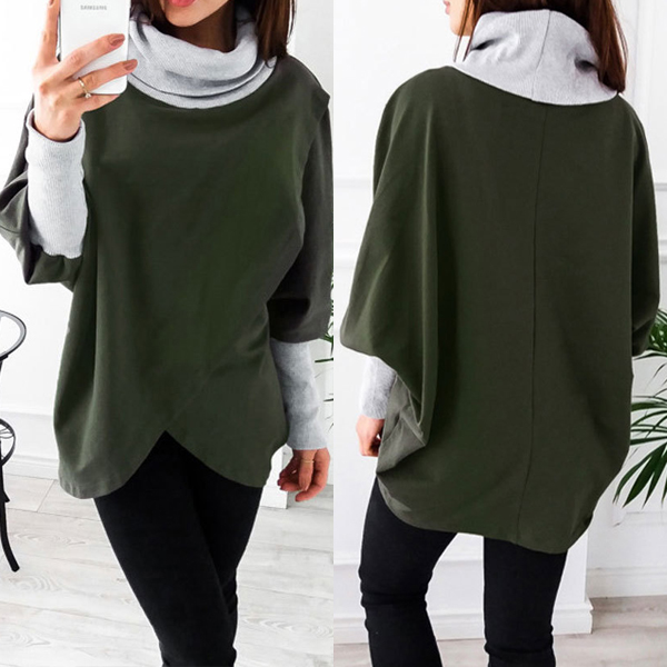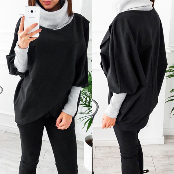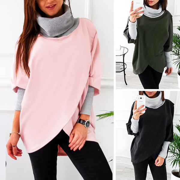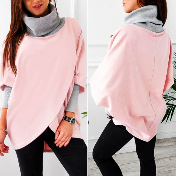 Wow,have you ever seen such a chic and unique sweatshirt? Contrast color style,its dolman sleeve,high neck