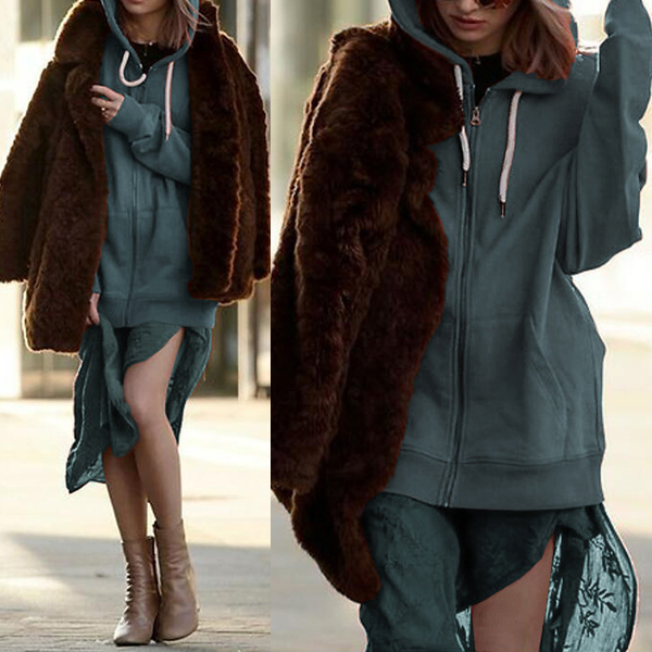 This sweatshirt coat features a solid color,finished with long sleeve,hooded and a loose silhouette,which can