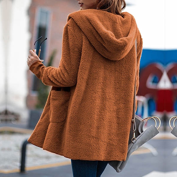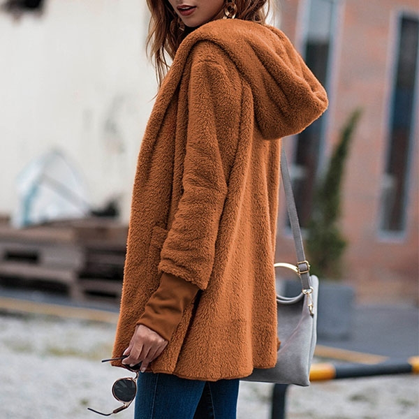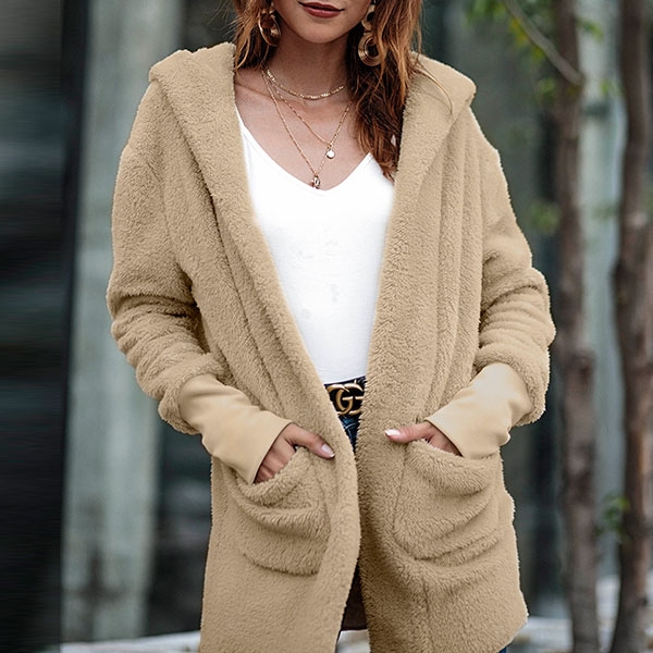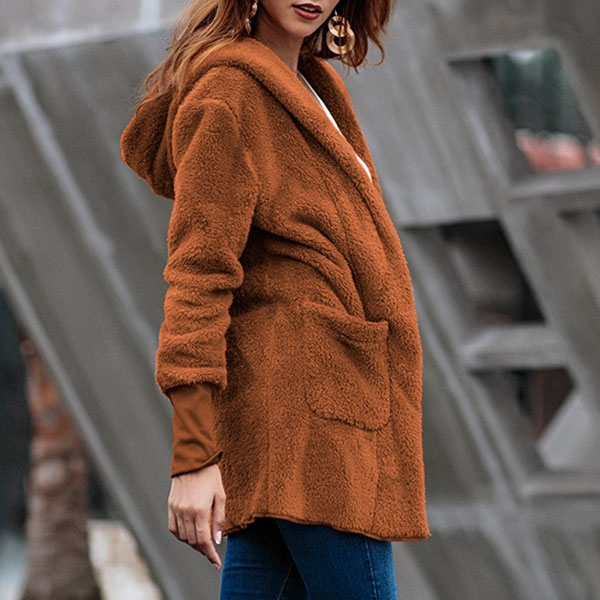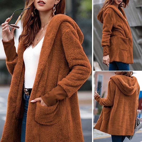 Greet the chilly days with this plush coat. It comes with a solid color,the soft plush fabric can keep you warm and comfortable all the day.