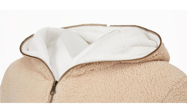 You can stay warm in this coat thanks to its soft and cozy plush fabric. It comes with a solid color,
