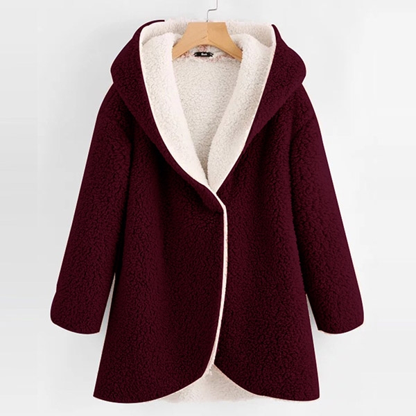 finished with long sleeve,hooded silhouette and hidden button design,this coat knows how to keep