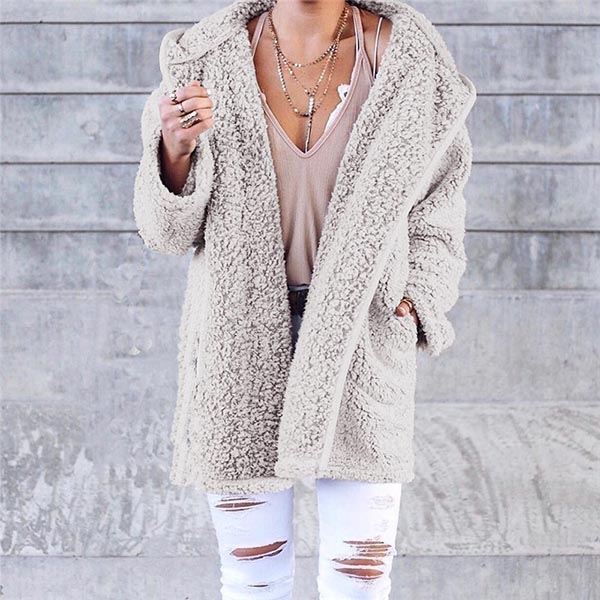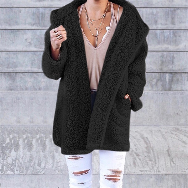 This plush coat would be your wise choice in these cold days. It comes with a solid color,finished with