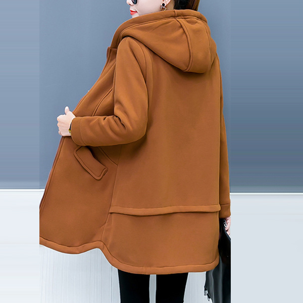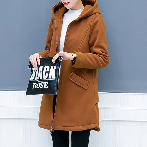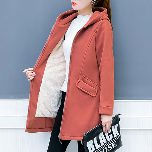finished with long sleeve,hooded silhouette and plush lining,this coat of course can ensure you a warm and cozy day.