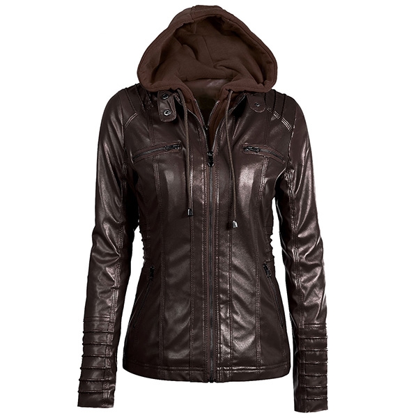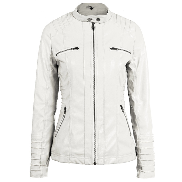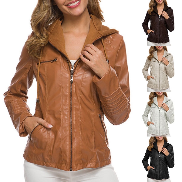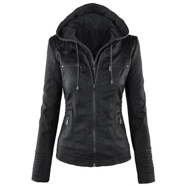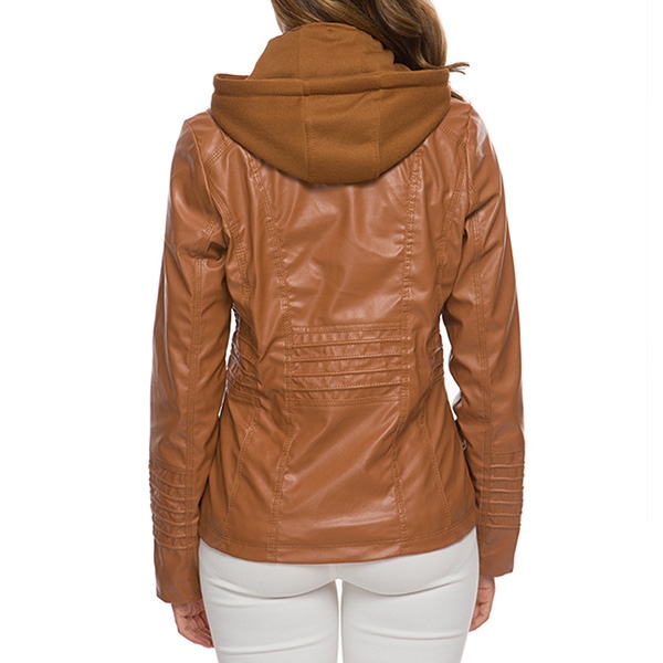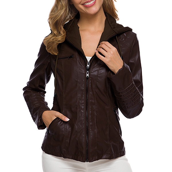 Enrich your winter wardrobe ensemble with this PU leather coat. Solid color style,finished with long sleeve,