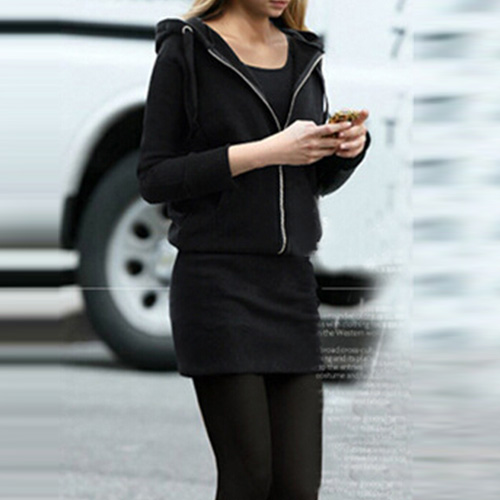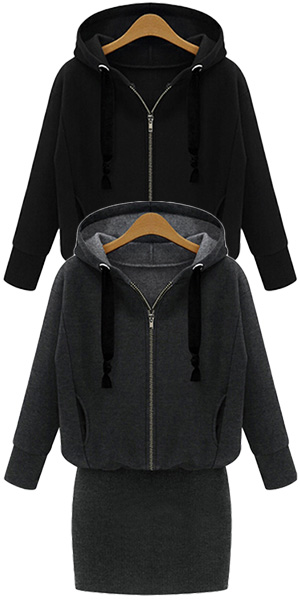 Outfitted with long sleeve,a drawstring hood,front zipper closure and slim fit design,chic