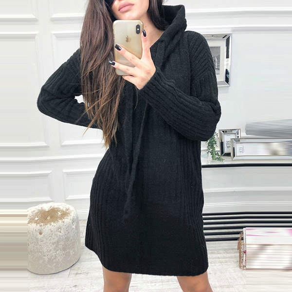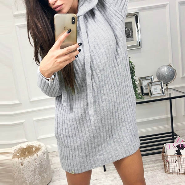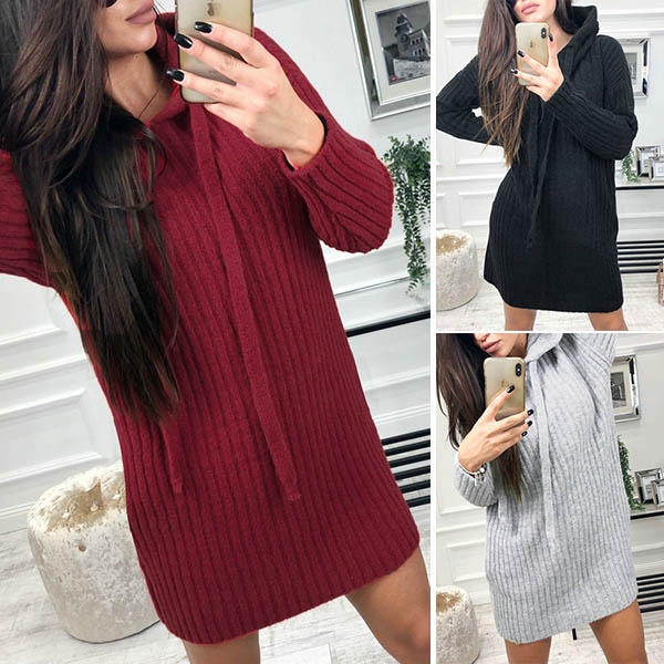 Features a solid color,finished with long sleeve,hooded and a fit silhouette,this dress can keep