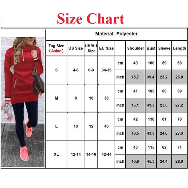 XL : Bust : 115cm(45.28"); Shoulder : 43cm(16.93"); Sleeve : 62cm(24.41"); Length : 71cm(27.95");