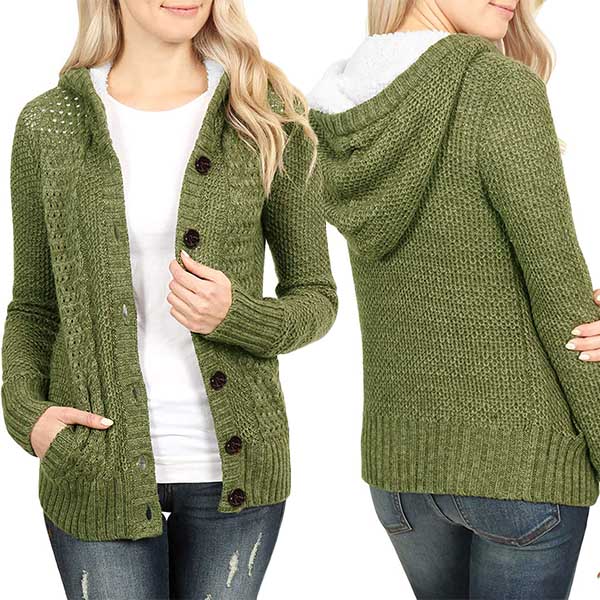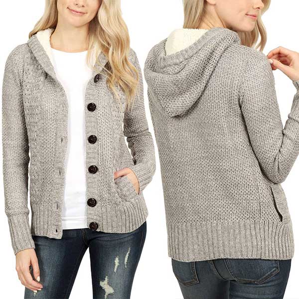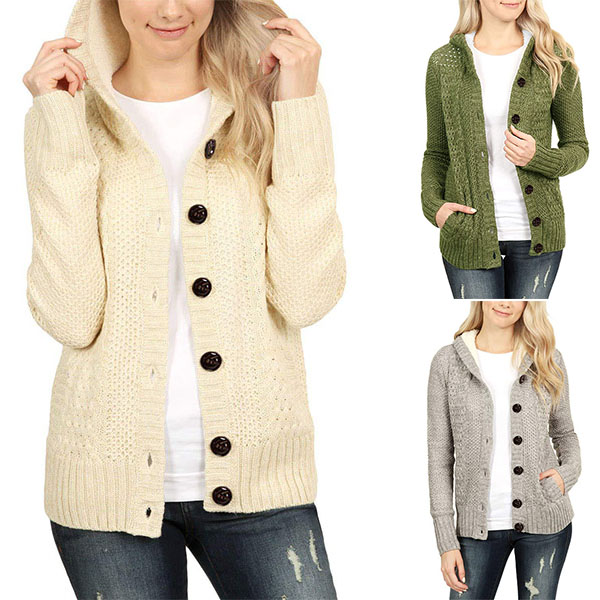 Designed with a solid color,long sleeve,hooded silhouette and front buttons details,this sweater coat