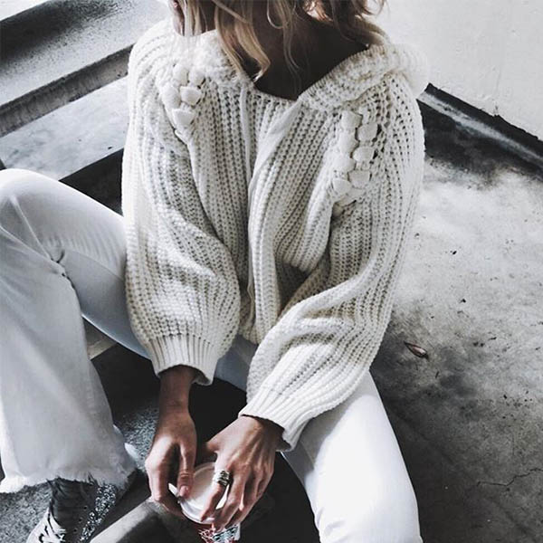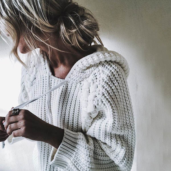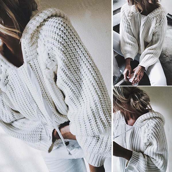 This cozy yet stylish sweater comes with a solid color,finished with long sleeve,hooded and a loose