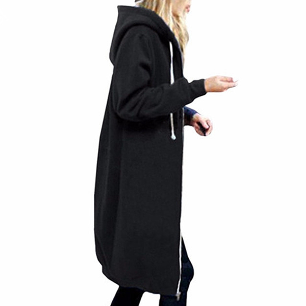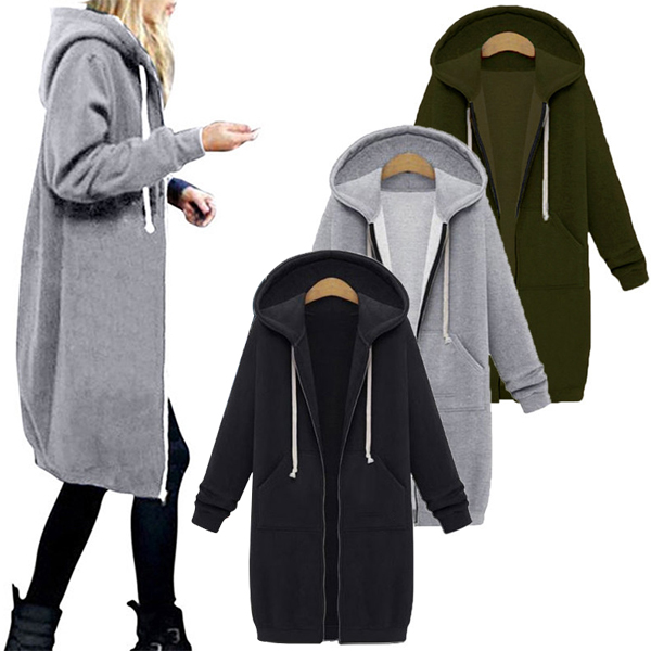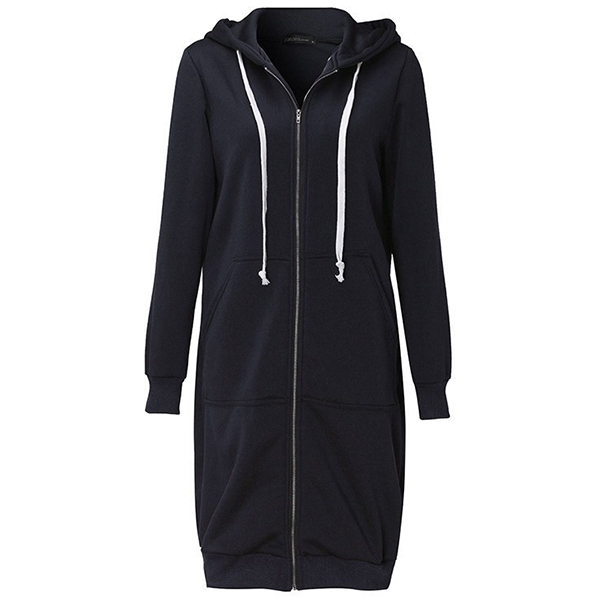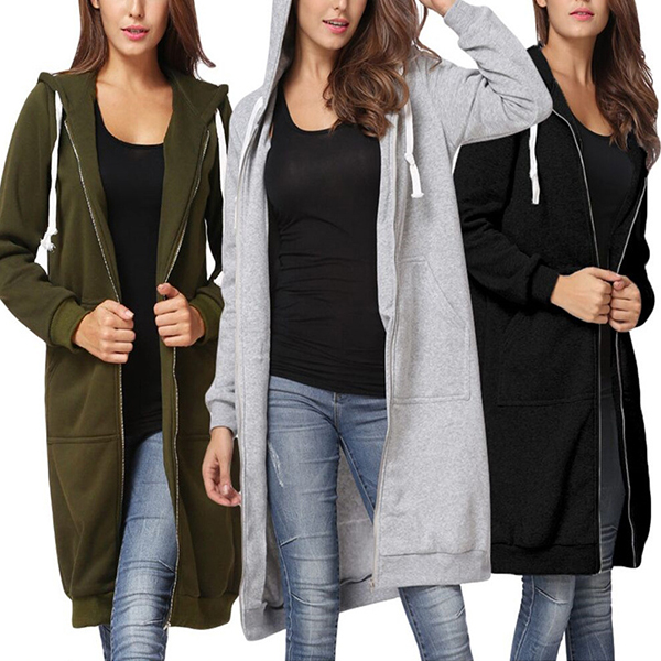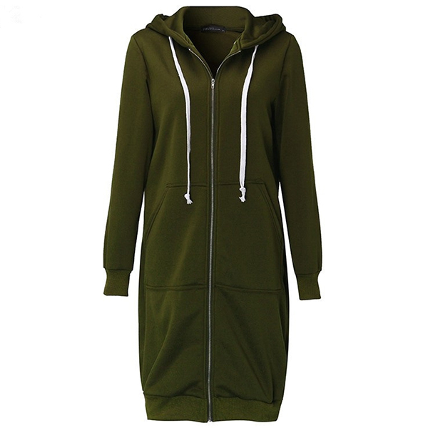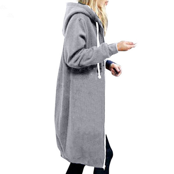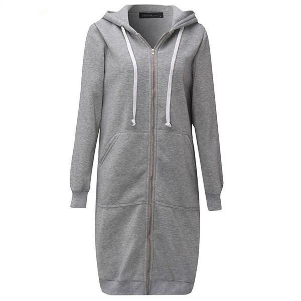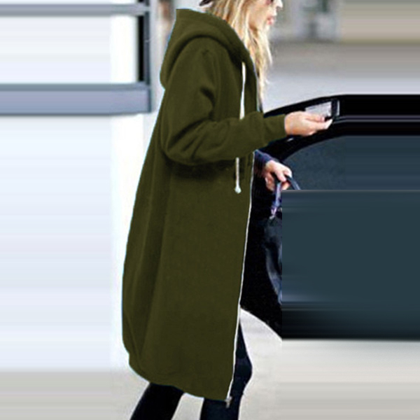 Fashion Solid Color Long Sleeve Hooded Sweatshirt Coat
