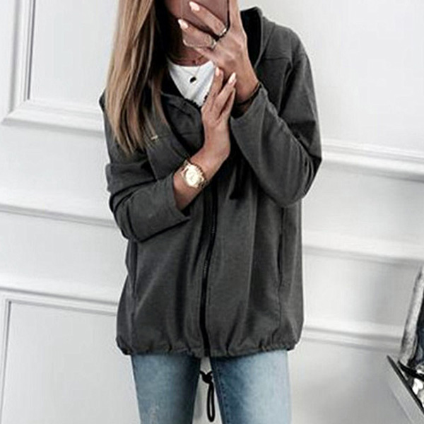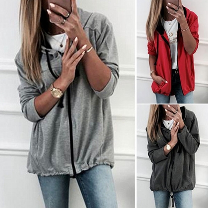 a solid color,finished with long sleeve,drawstring hooded silhouette and front zipper closure,simple and classic.