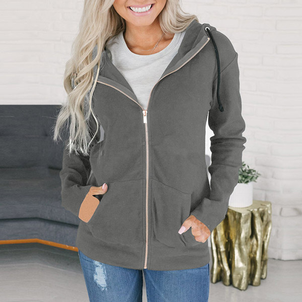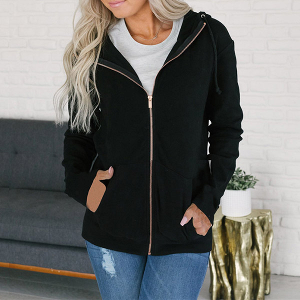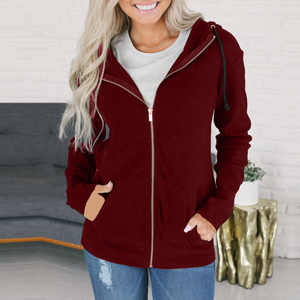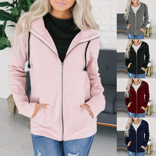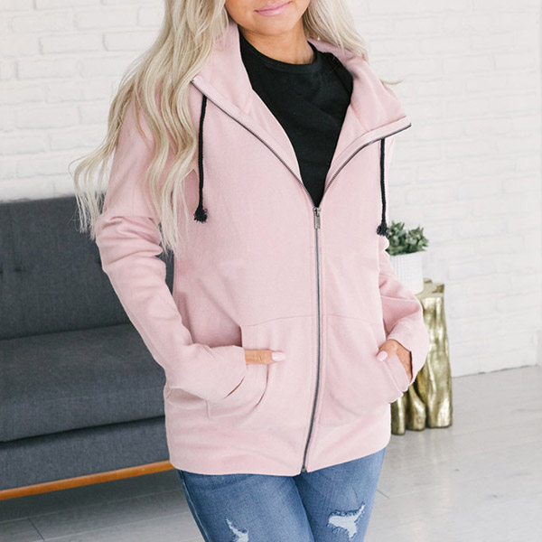 Outfitted with solid color,long sleeve,hooded silhouette and front zipper design,this piece maintains