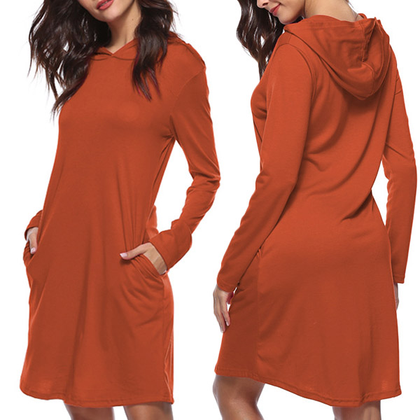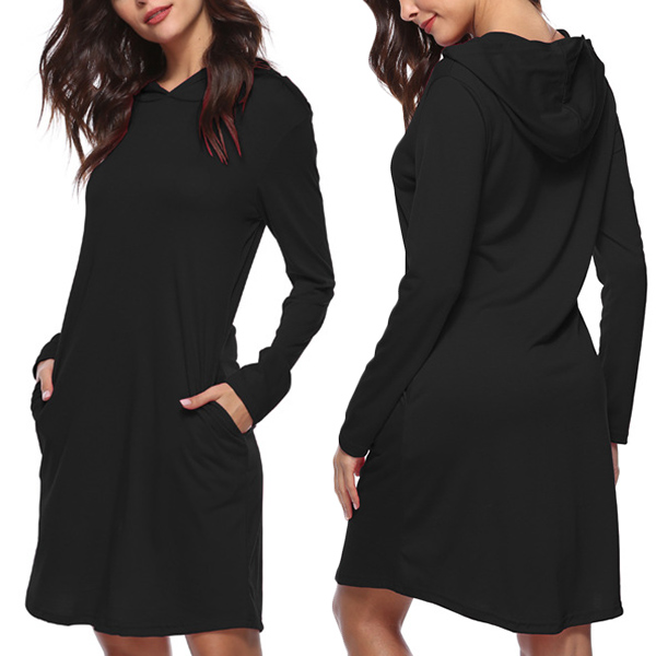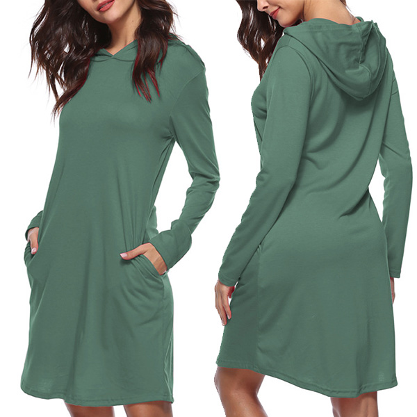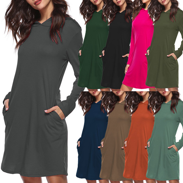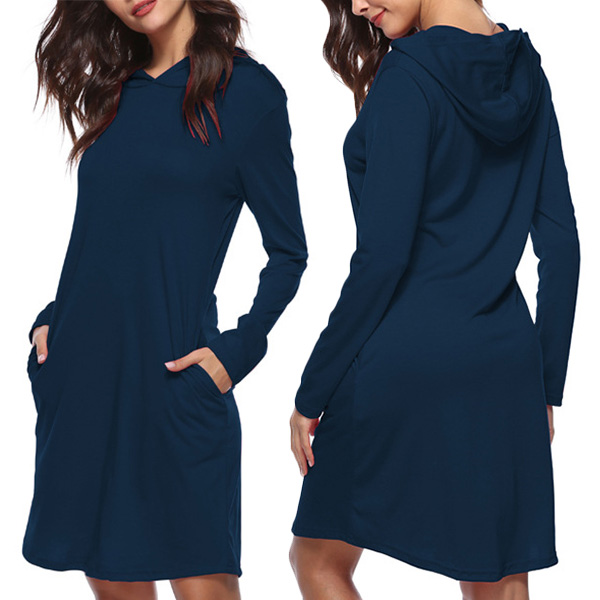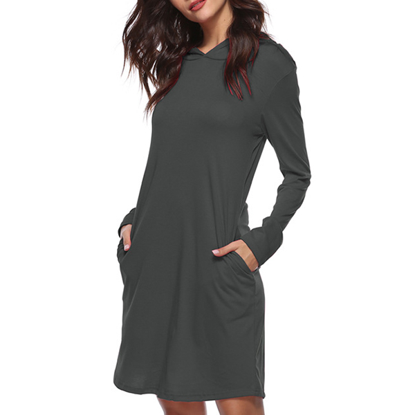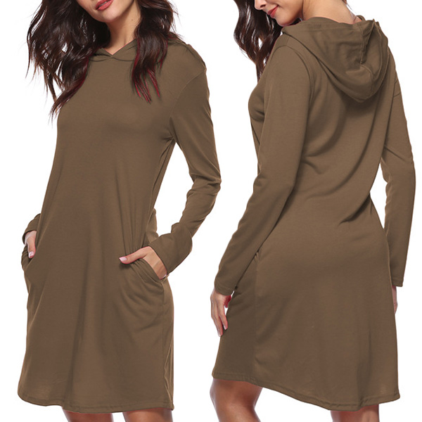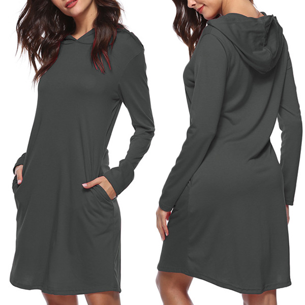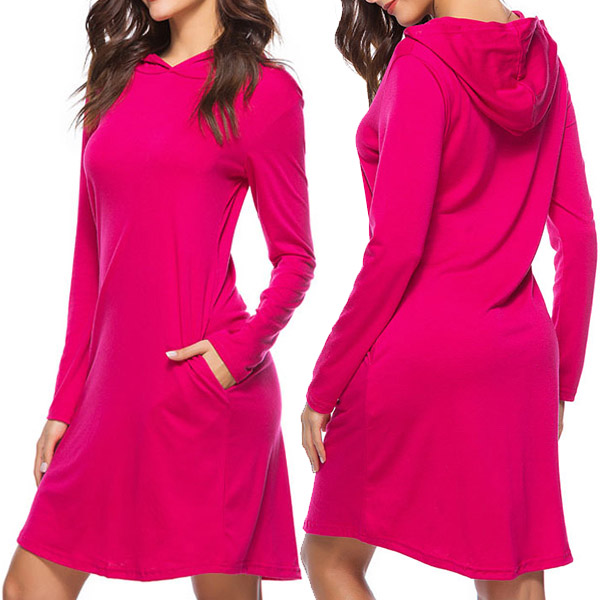 On your casual weekends,this relaxed and cozy sweatshirt dress can be a good choice. Solid color