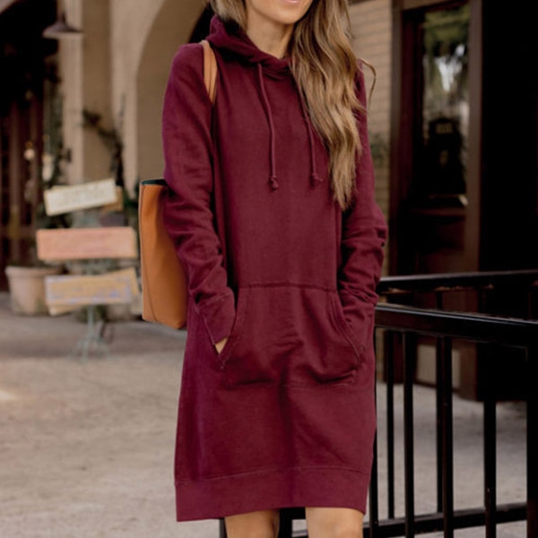 long sleeve,hooded silhouette and front pocket design,this classic yet stylish sweatshirt dress can