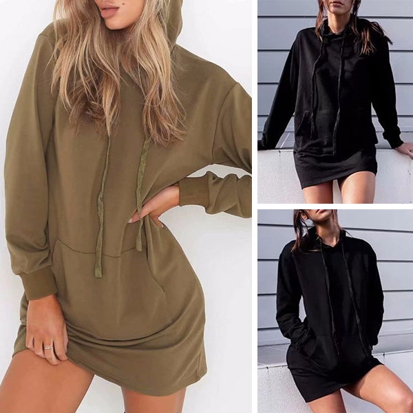 Achieve for a simple,casual yet stylish autumn style with this sweatshirt dress. Features a solid color,