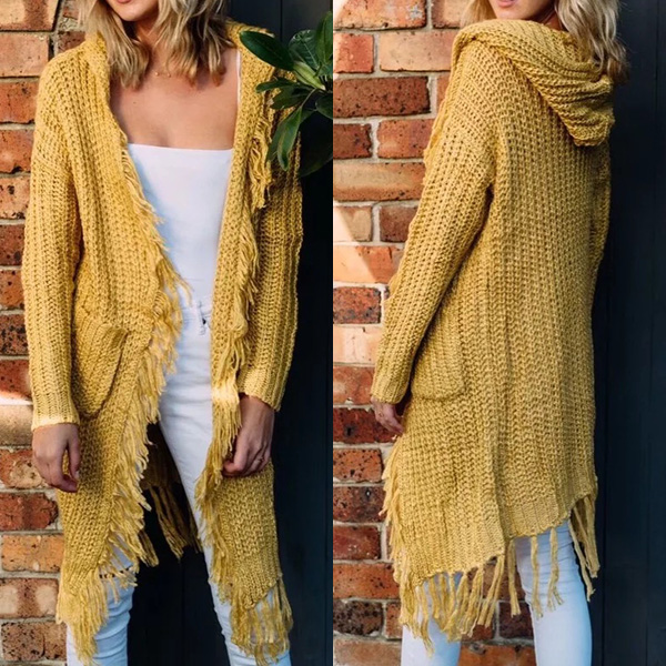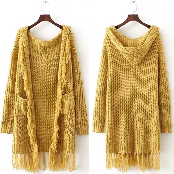 designed with long sleeve,hooded and tassel details,this wonderful piece can offer you different fashion style by matching
