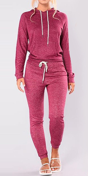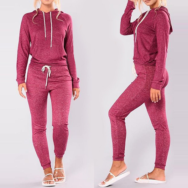 Solid color style,including a long sleeve hoodie and a sports pants,