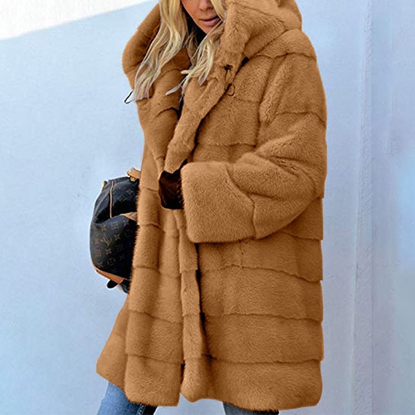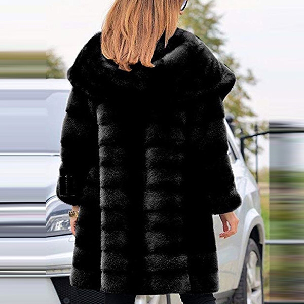 This plush coat is your perfect partner in these cold days. It comes with a solid color,finished with long sleeve