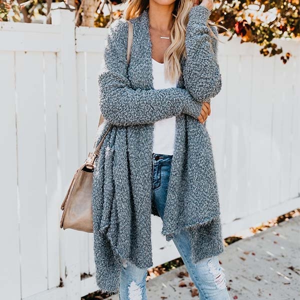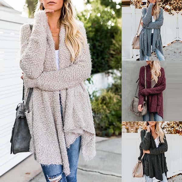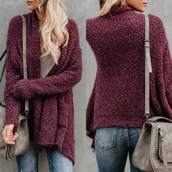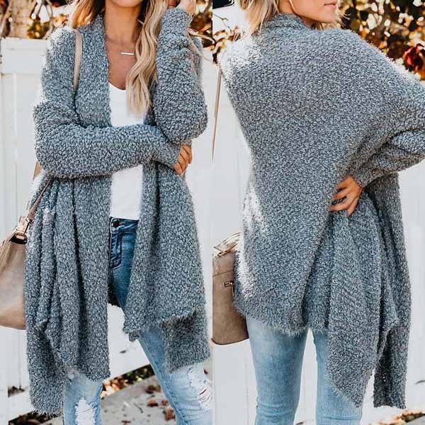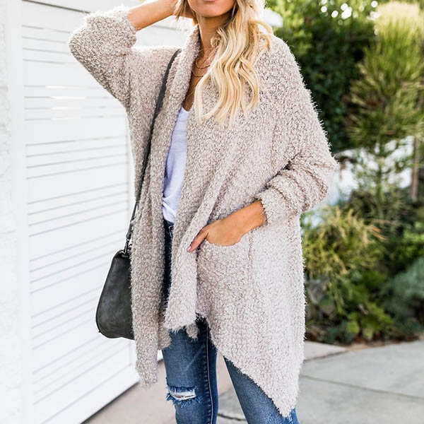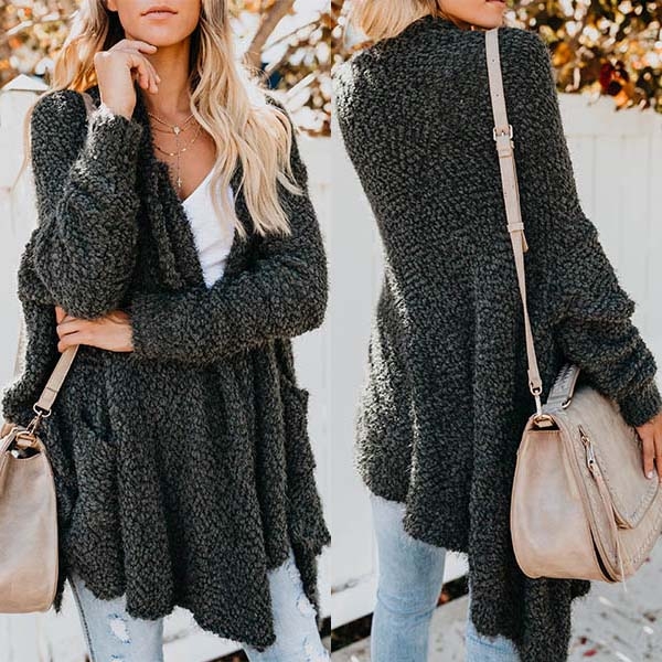 Fashion Solid Color Long Sleeve Irregular Hem Cardigan Coat