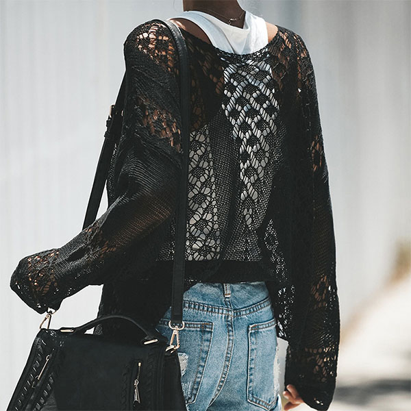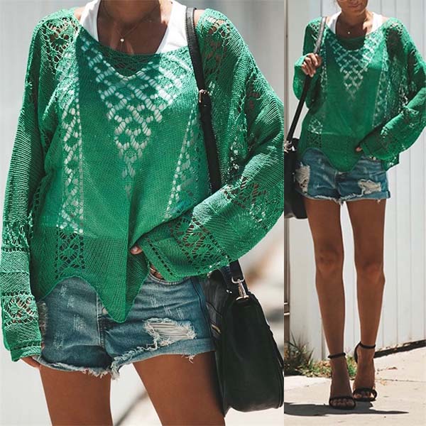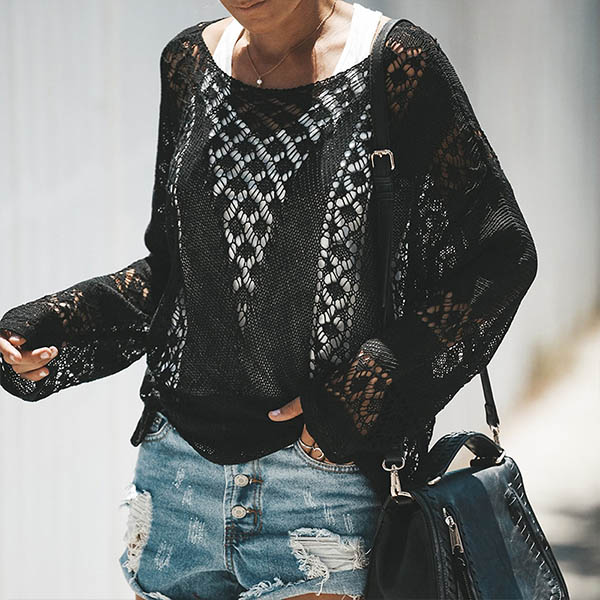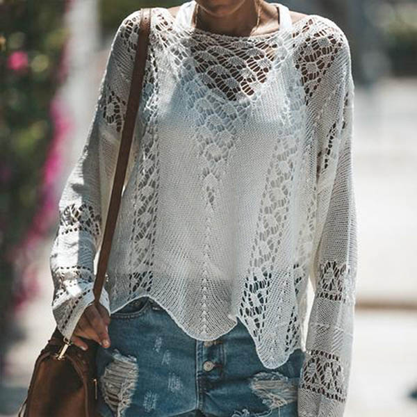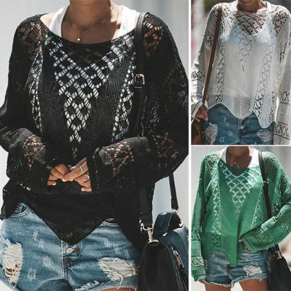 Hollow out knit style makes this piece look so chic and sexy. Crafted in a solid color,with long sleeve,