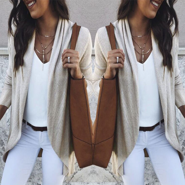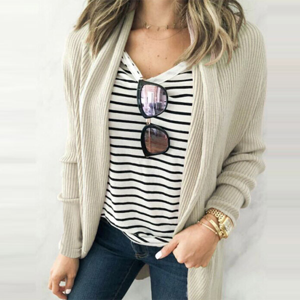 Make your wardrobe more complete by adding this knit cardigan. Solid color style,with long sleeve,