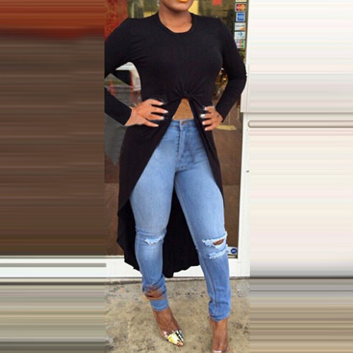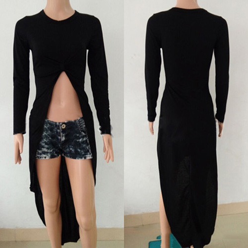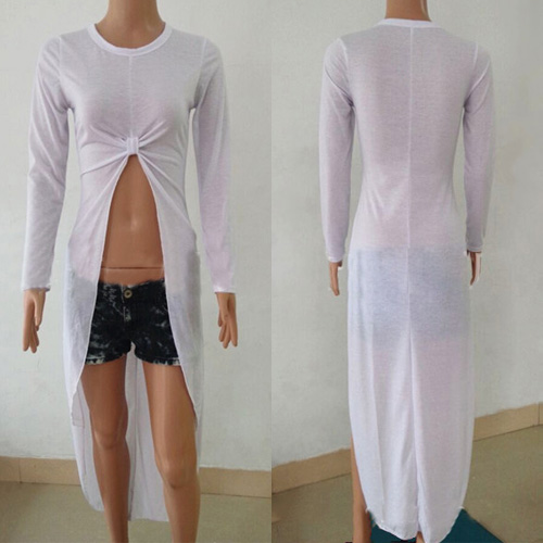 round neck and irregular hem design. Front with knotted design makes it look more eye-catching.