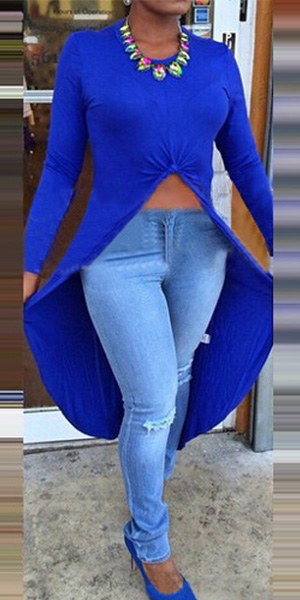 You would be attracted by this chic and unique top. It features solid color style,with long sleeve,