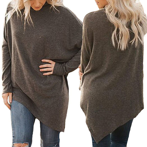 Style and cozy come so perfectly in this t-shirt. It boasts a solid color,finished with long sleeve,,irregular hem