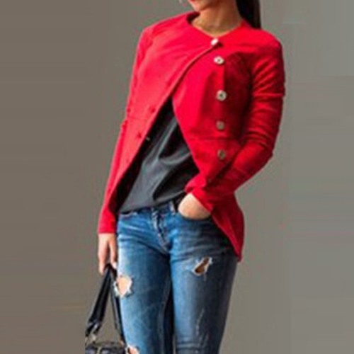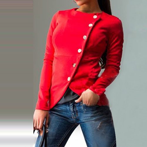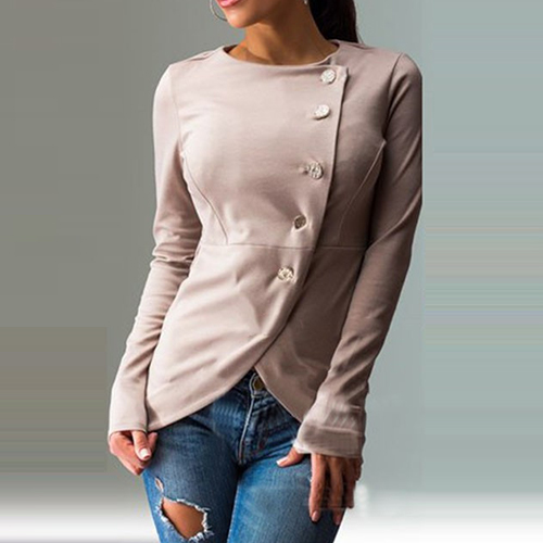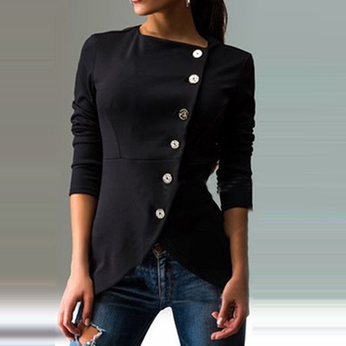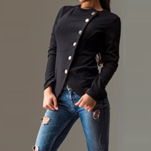 outfitted with long sleeve,irregular hem and oblique buttons design,unique and stylish. You