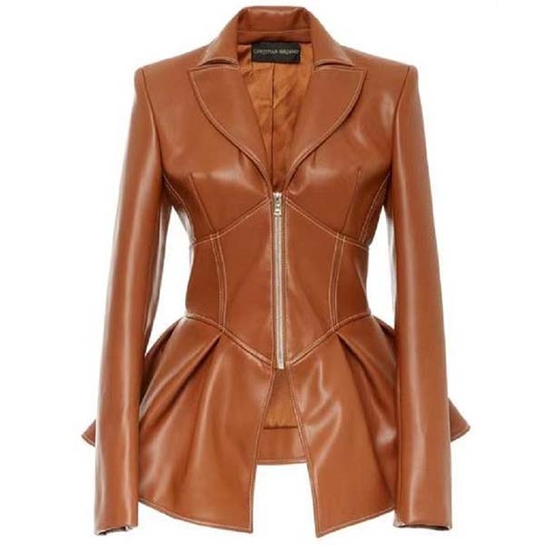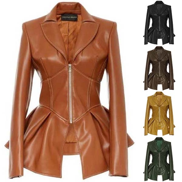 Hey,girls,you can trust in this PU leather coat to help you win more eyes. It is designed with a solid color,
