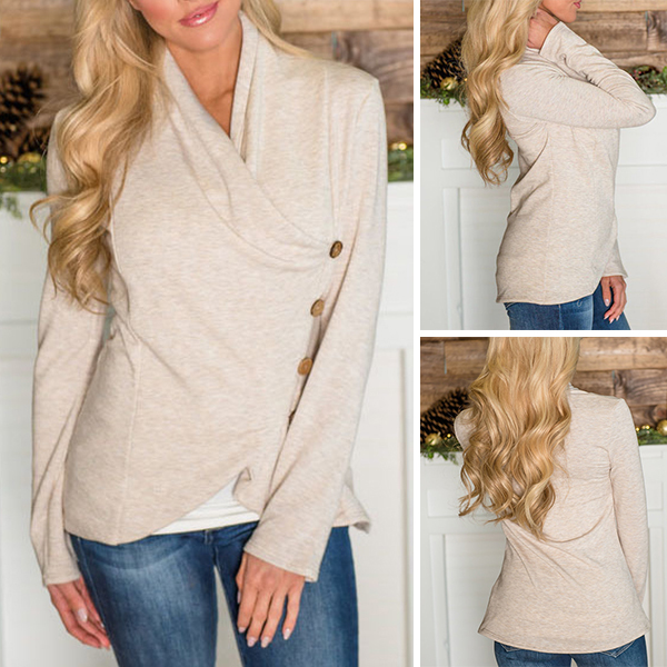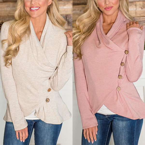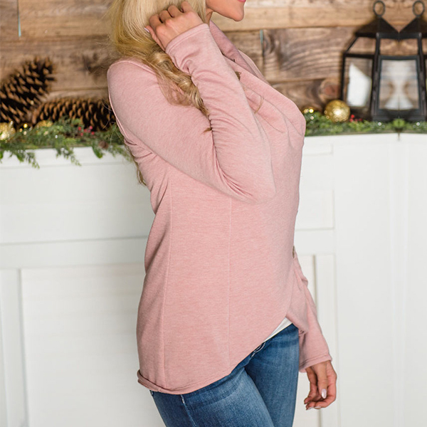 Fashion Solid Color Long Sleeve Irregular Hem Side-button T-shirt