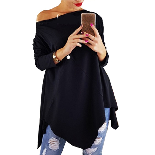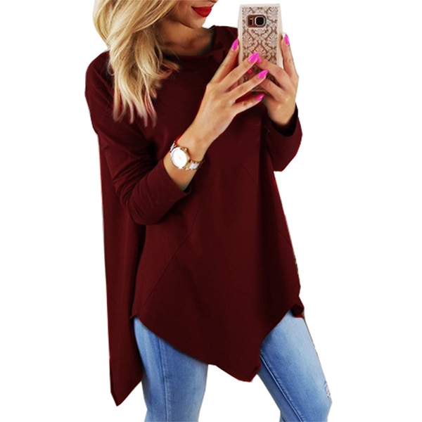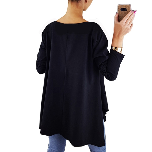 with a solid color tone,accompanied with long sleeve,irregular hem and a loose silhouette,this top knows