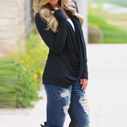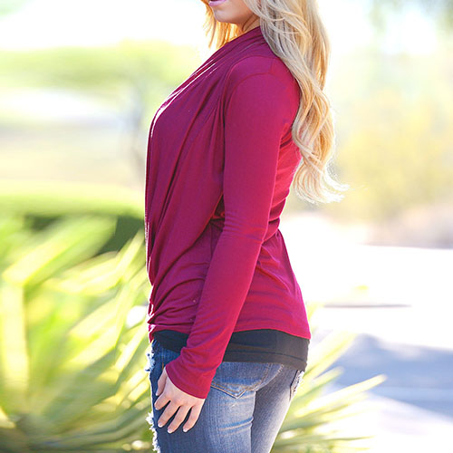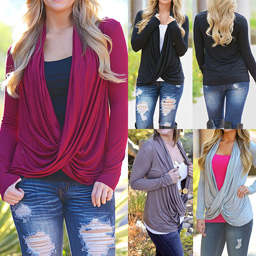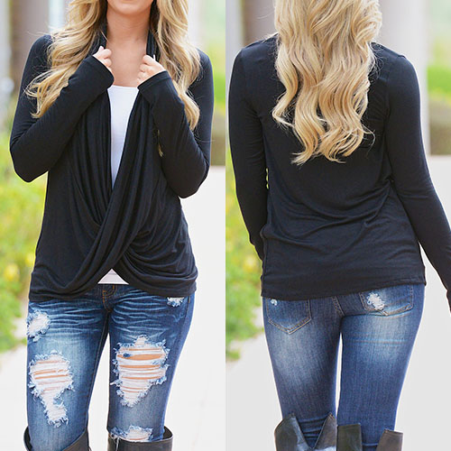 Wow,such a chic and unique tops! It features solid color style,front with irregular cross design