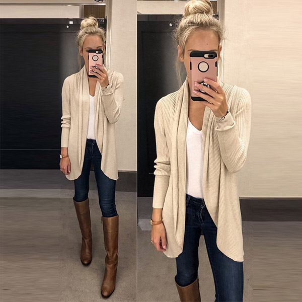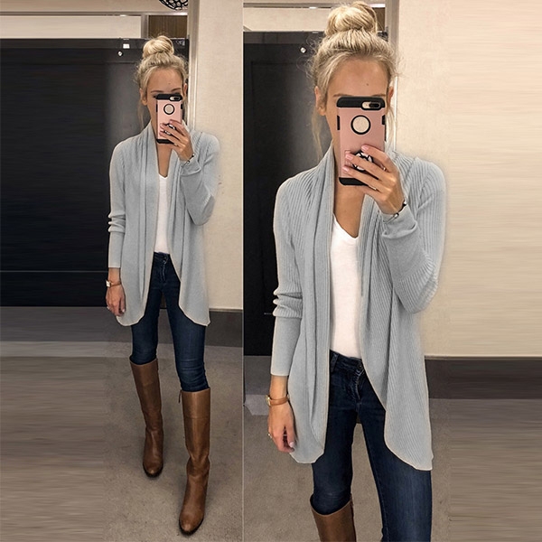 This knit cardigan can give you an easy transition from the hot season to the cold season. Its soft and