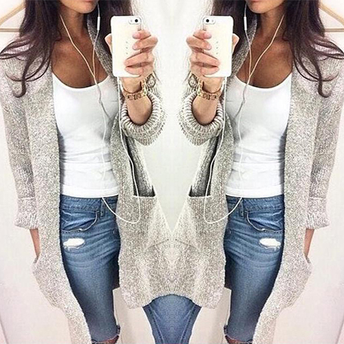 this long-sleeved knit cardigan can do no wrong. Solid color with long sleeve and an open-front,